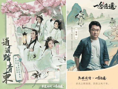在游戏之外,,,《一念逍遥》一直致力于打造国风修仙原创IP,,,以音乐、、、、漫画,,小说等衍生内容去延展丰富游戏内容。。。。上线以来,,,,整整做了十首歌,,,小说应该也是喜马拉雅平台今年游戏品类小说收听量Top1的作品;而在营销的内容传播上,,,《一念逍遥》也一直秉承比较国风的基调,,传递诗词、、、、文化内涵,,,,如如清明节定制汉服合作,,,,传递中国传统的清明踏青、、、清明诗会文化。。