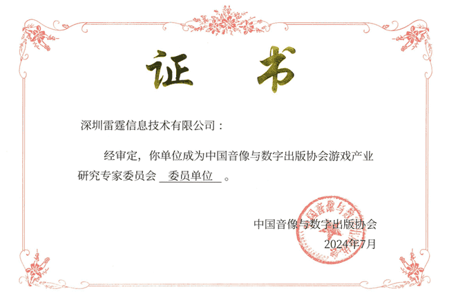 2024年7月25日,,,中国音像与数字出版协会游戏产业研究专家委员会(以下简称“中国音数协游戏专委会”)成立大会在上海市召开,,,厦门一竞技网络技术股份有限公司及其子公司深圳雷霆信息技术有限公司(以下统称“公司”)正式成为中国音数协游戏专委会委员单位。。
