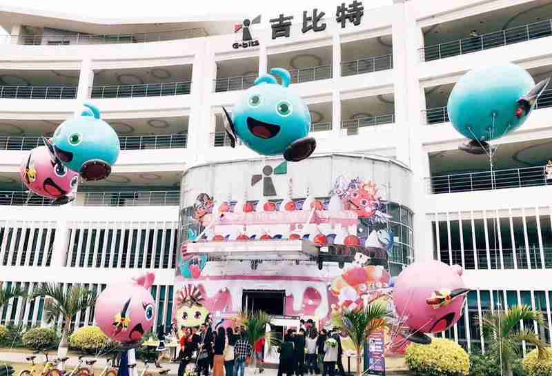 12月15日,,,为了庆祝《不思议迷宫》一周岁生日,,,冈布奥们准备了众多花式庆生活动::厦门一竞技大楼变身巨型蛋糕、、、女仆小姐姐为大家奉上美味小蛋糕、、、、更有大头冈布奥飞上天……引来不少冒险者身亲临现场为冈布奥打Call!!!!